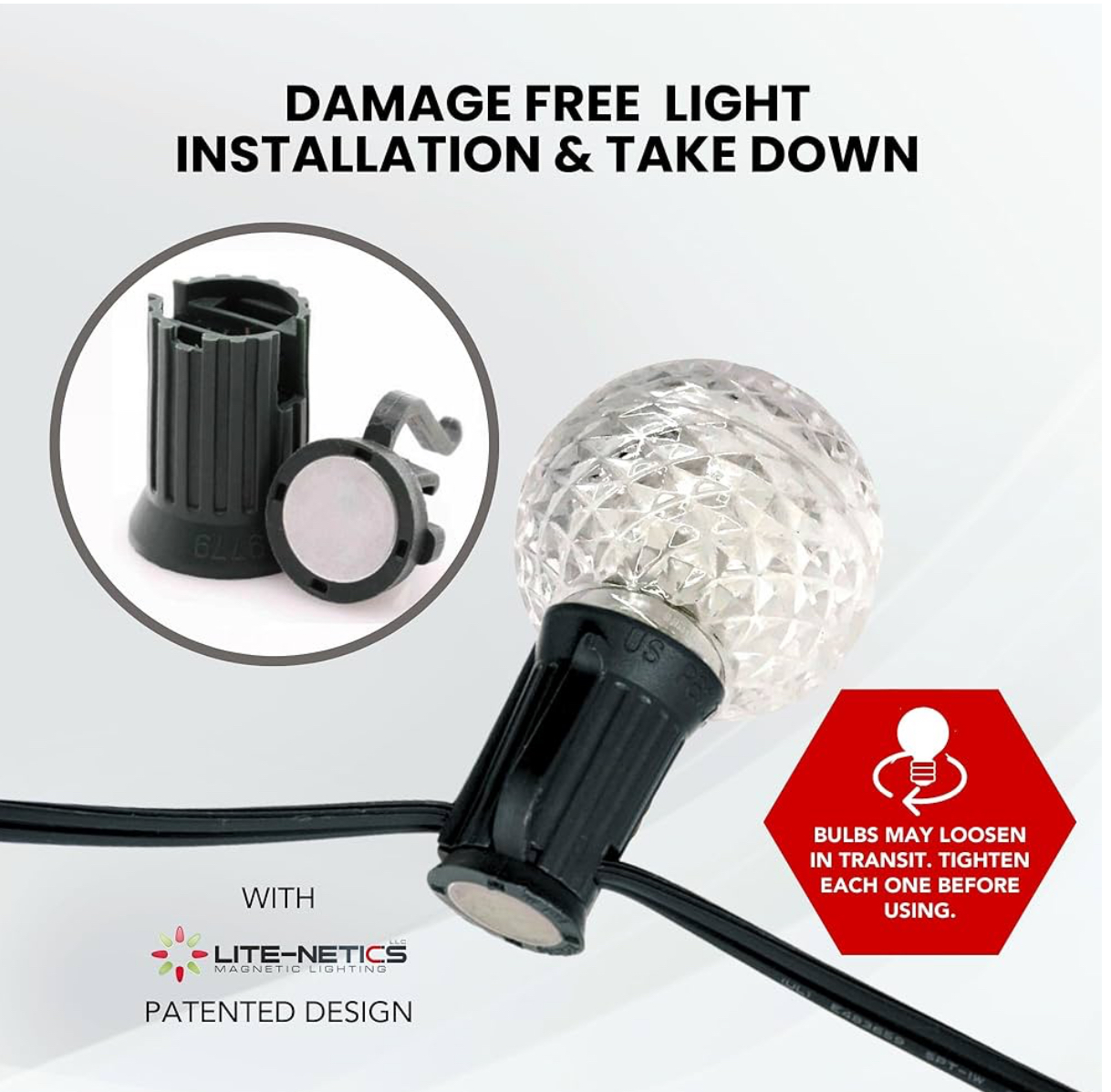 G40 Black/White Magnetic Patio Light Strands 25′ to 100′ (15″ spacing)