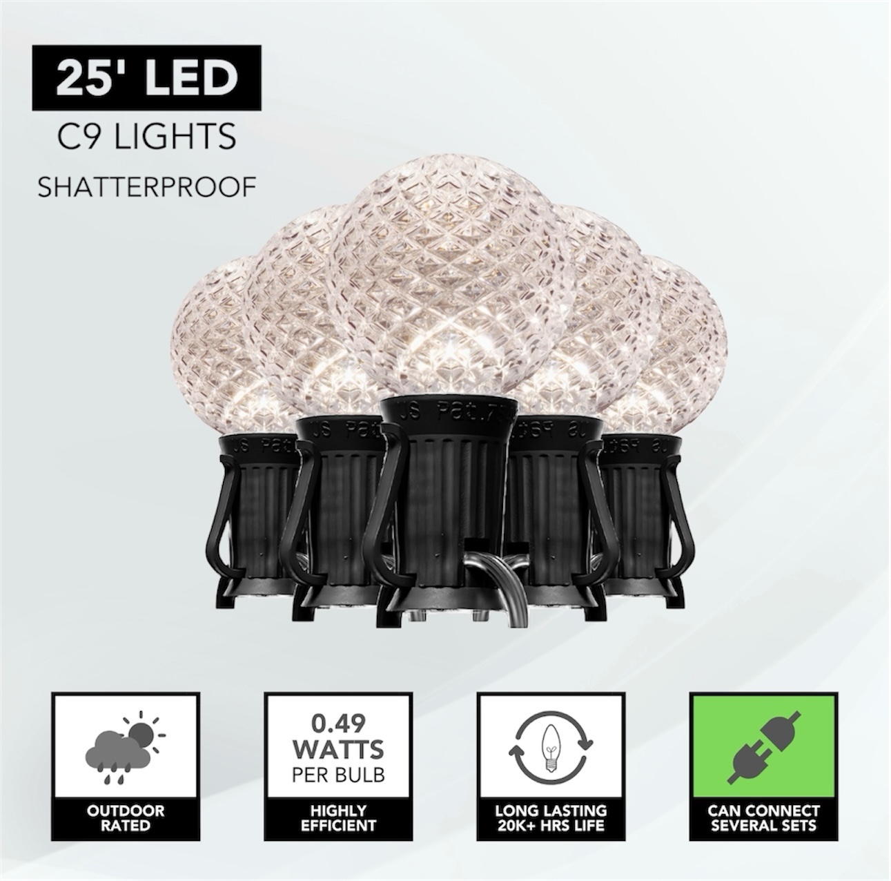 C9 Magnetic light string with SPT-1 wire includes G40 LED warm white bulbs and plugs at both ends of each strand. (15in Spacing)
